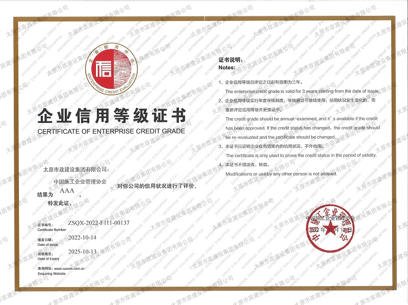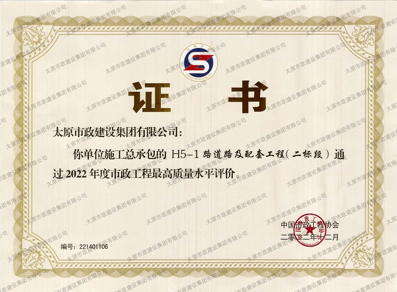 資質(zhì)證書 營業(yè)執(zhí)照 2022年度市政工程最高質(zhì)量水平評價_H5-1路道路及配套工程(二標段) 2022年度工程建設誠信典型企業(yè) 中國施工企業(yè)管理協(xié)會_AAA級企業(yè)信用等級 2022年度全國市政工程建設優(yōu)秀質(zhì)量管理小組三等獎_''核動力QC小組”提高瀝青路面壓實度合格率”